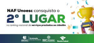 NAF Unoesc conquista o segundo lugar no ranking nacional de serviços prestados ao cidadão Ler notícia 17 de fevereiro de 2024